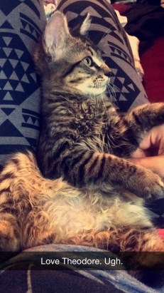 As any of you may know, I have three cats, two are kitties, the other is the mama. Well, my little man Theodore decided he wasn’t going to feel well when I got off of work on Friday (08/28/15). I mistook him acting weird as a sign of a belly ache (kittens get those sometimes) and went ahead with my plans to sleep at my fiancé’s parents house (we still live with our parents so we move back and forth). Well. Saturday comes around and we go check on the furbabies.