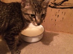 Around Sunday night my boy started drinking the tuna flavored water and he even went to the bathroom! Things were slowly starting to look up, but he still wouldn’t eat or play around; then the baby decided to spit up a hairball and eat it! Nasty boy. We figured that would be the problem right then, so we decided to take him in.